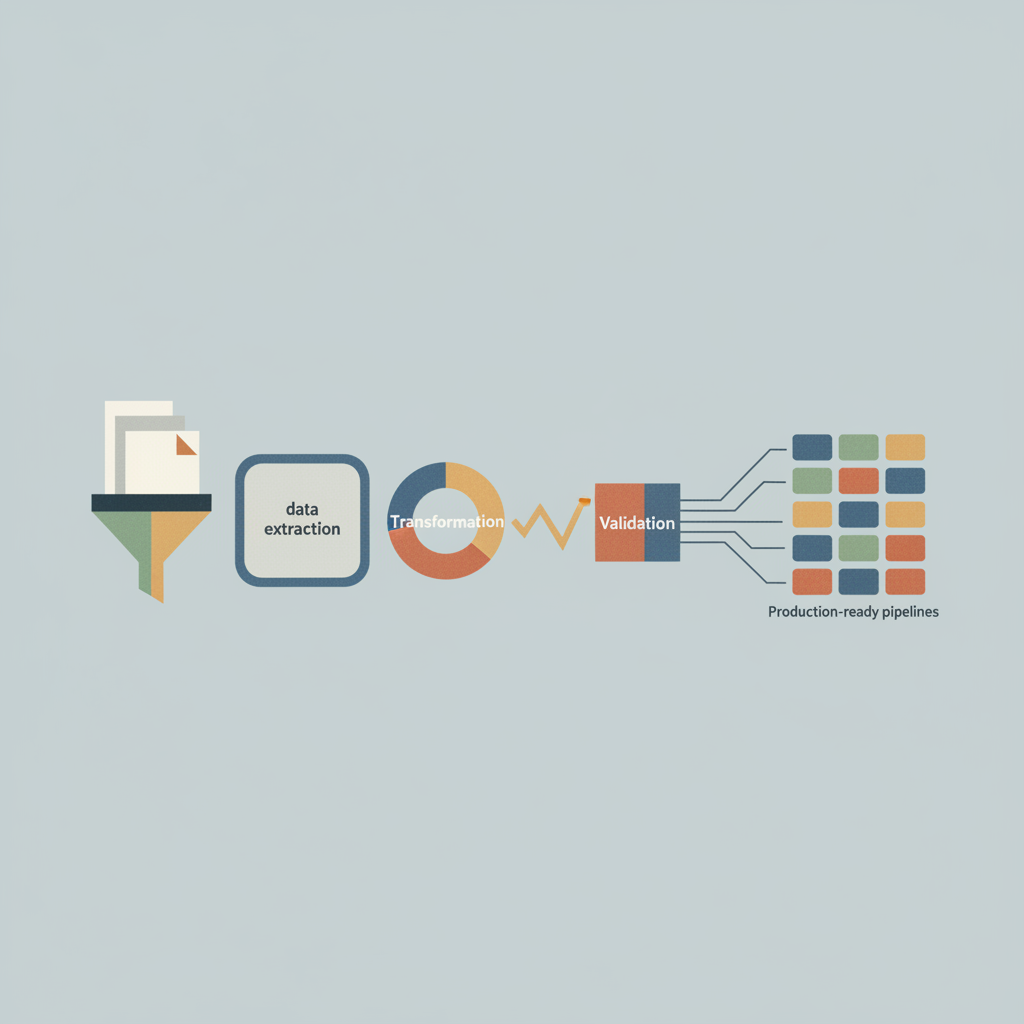Production pipelines chain classification, splitting, extraction, and validation into automated workflows. Classification routes incoming documents to type-specific extraction schemas. Splitting separates batch-scanned files before extraction. Validation checks outputs against business rules before downstream systems consume the data.