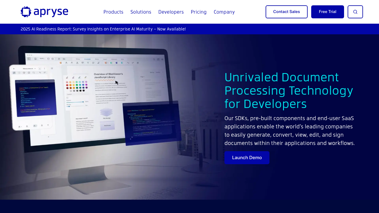 Apryse provides form field detection capabilities focused on converting static PDFs into interactive forms through its Smart Data Extraction SDK. The tool uses AI to identify and classify PDF form fields including radio buttons, checkboxes, signature fields, and text inputs. Each detected field returns field type, bounding box coordinates, and confidence score in JSON format.