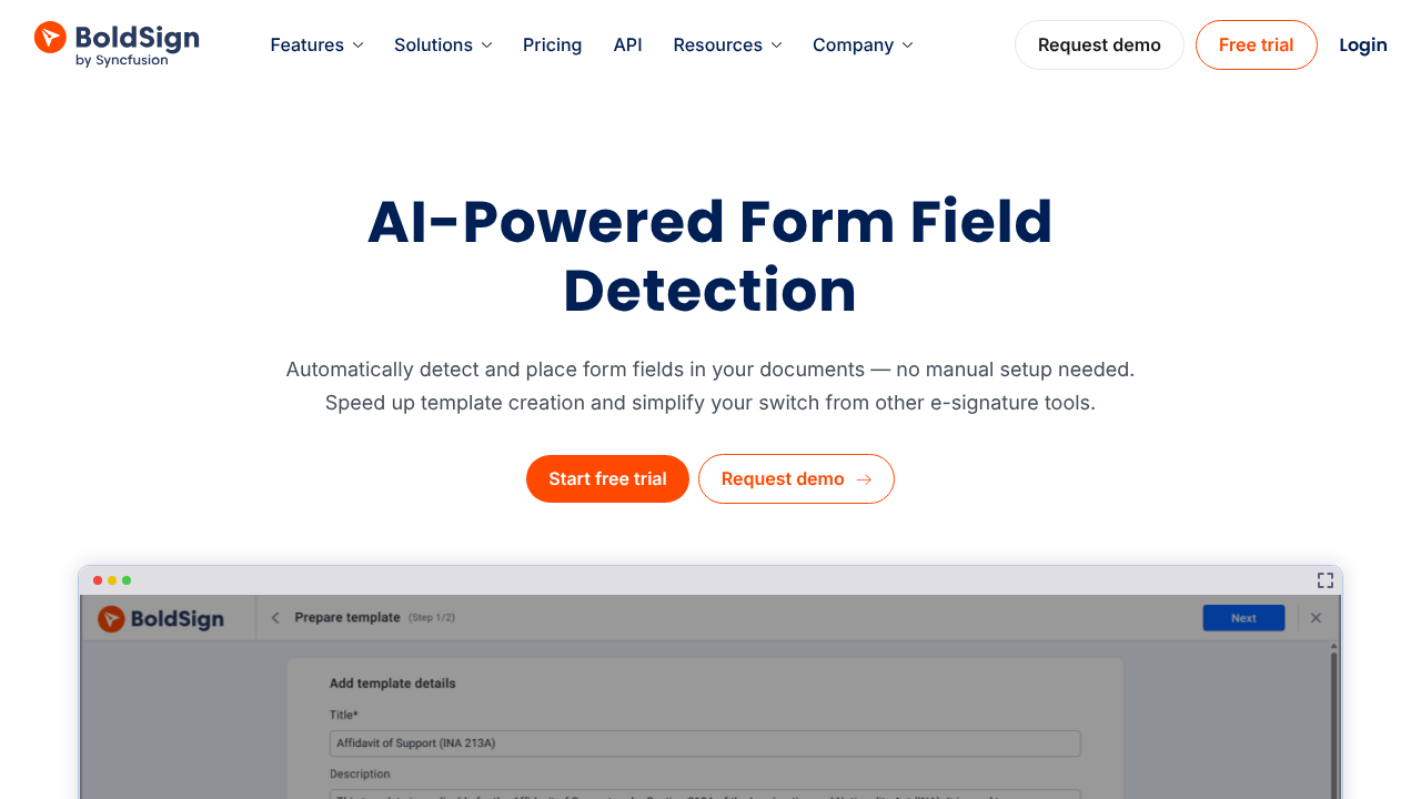 BoldSign leverages AI-powered form field detection, using Google Gemini, to streamline e-signature workflows by automatically placing fields in templates. Its AI can pre-fill PDFs up to 50 pages in seconds, accurately identifying text boxes, radio buttons, checkboxes, date signed fields, and signature fields. The system achieves over 90% accuracy on standard form fields and supports template creation with optional manual review, enabling teams to quickly set up contracts, NDAs, and other signature documents.