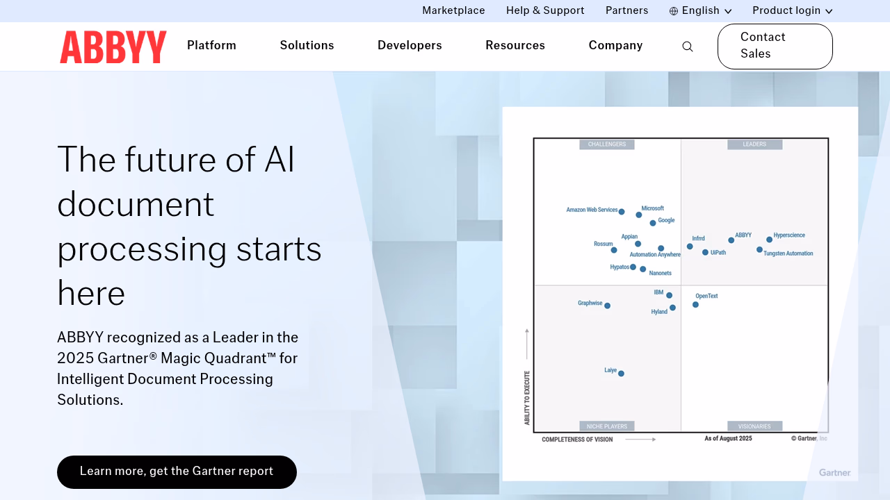 ABBYY Vantage positions itself as a cloud-native IDP solution with decades of OCR expertise behind it. The tool offers pre-trained document skills for common business documents and allows custom skill development for specialized use cases.
