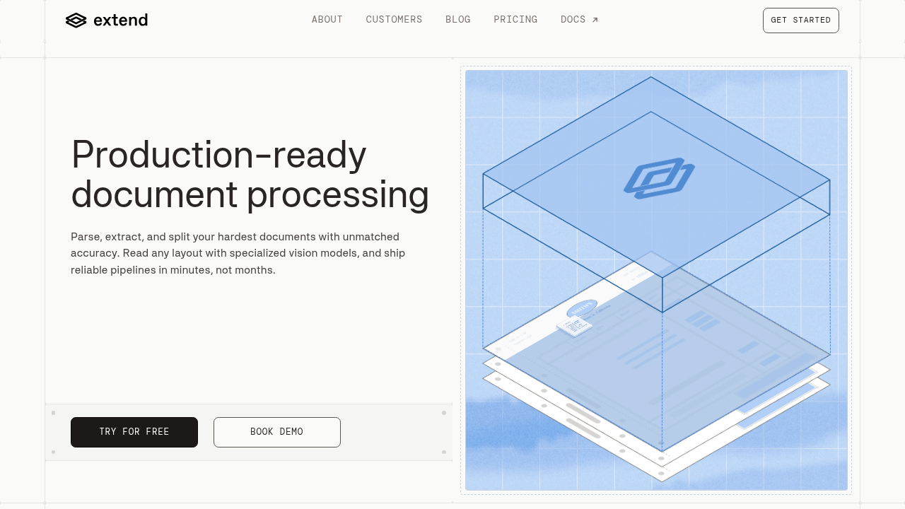 Extend is the complete document processing toolkit comprised of the most accurate parsing, extraction, and splitting APIs to ship your hardest use cases in minutes, not months. Extend's suite of models, infrastructure, and tooling is the most powerful custom document solution, without any of the overhead. Agents automate the entire lifecycle of document processing, allowing engineering teams to process the most complex documents and optimize performance at scale.