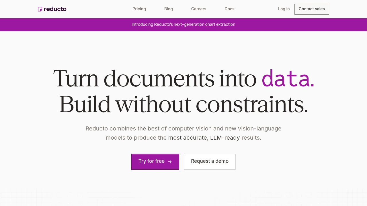 Reducto offers an OCR-focused API designed to extract and parse text from a variety of document formats. It supports basic digitization of PDFs and images and can be integrated into simple extraction workflows, making it suitable for early-stage automation efforts within supply chain environments.