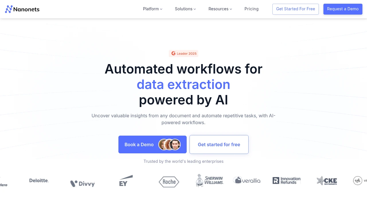 Nanonets provides AI-powered document processing with OCR and deep learning models designed to automate accounts payable, order processing, and general document workflows. The solution processes unstructured documents including invoices, receipts, purchase orders, and bills of lading.