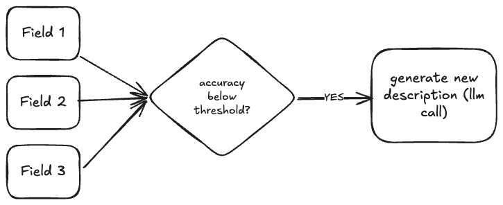 Our first proof-of-concept was a workflow. It was heuristic-based and deterministic, with AI involved only at the final step of generating new descriptions.