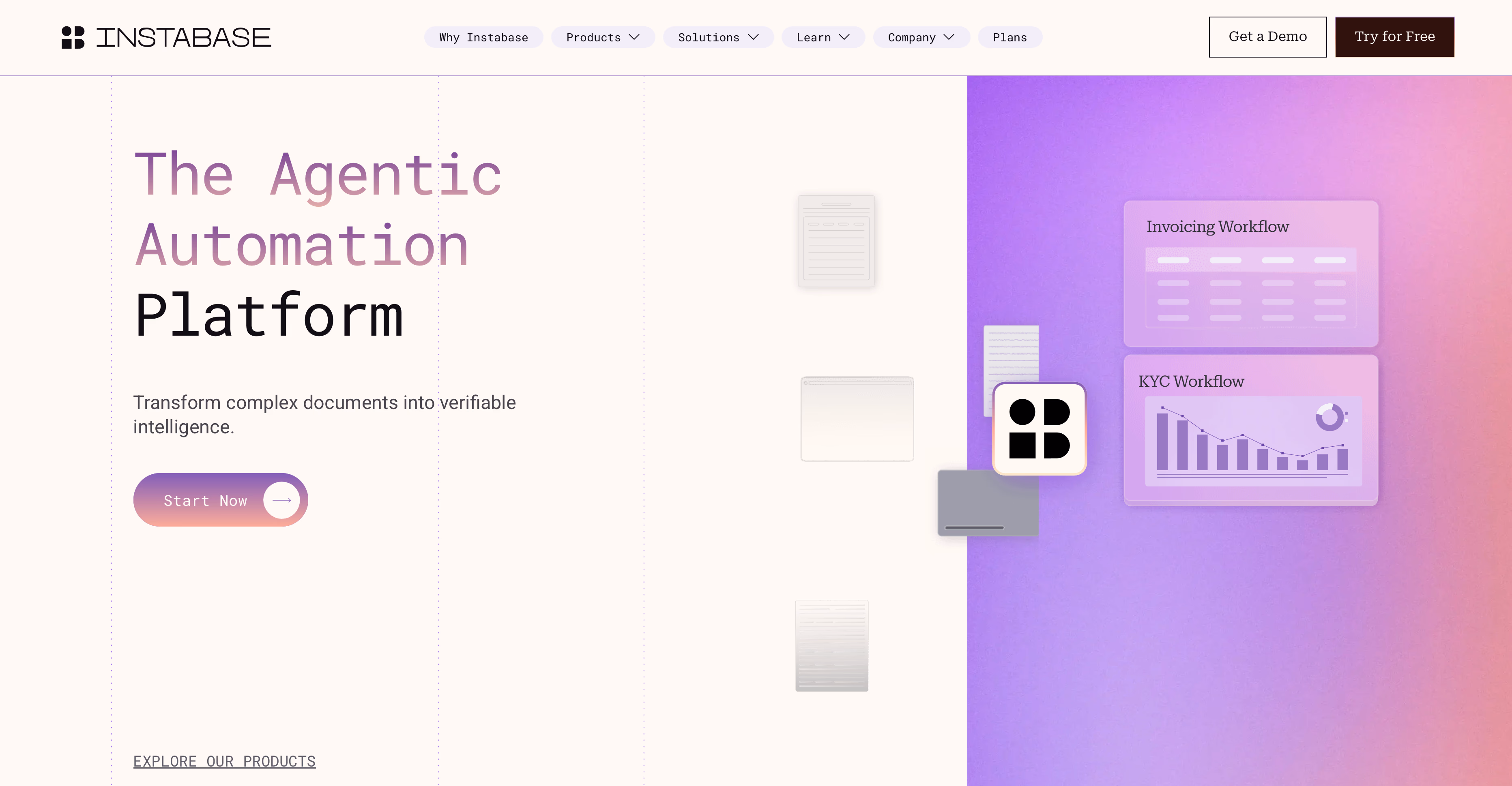 Instabase positions itself as an AI-powered solution for embedding intelligence into business processes through document processing and unstructured data analysis. The service operates through an AI Hub that lets users interact with documents, automate workflows, and deploy what they call "agentic automation" for enterprise document operations.