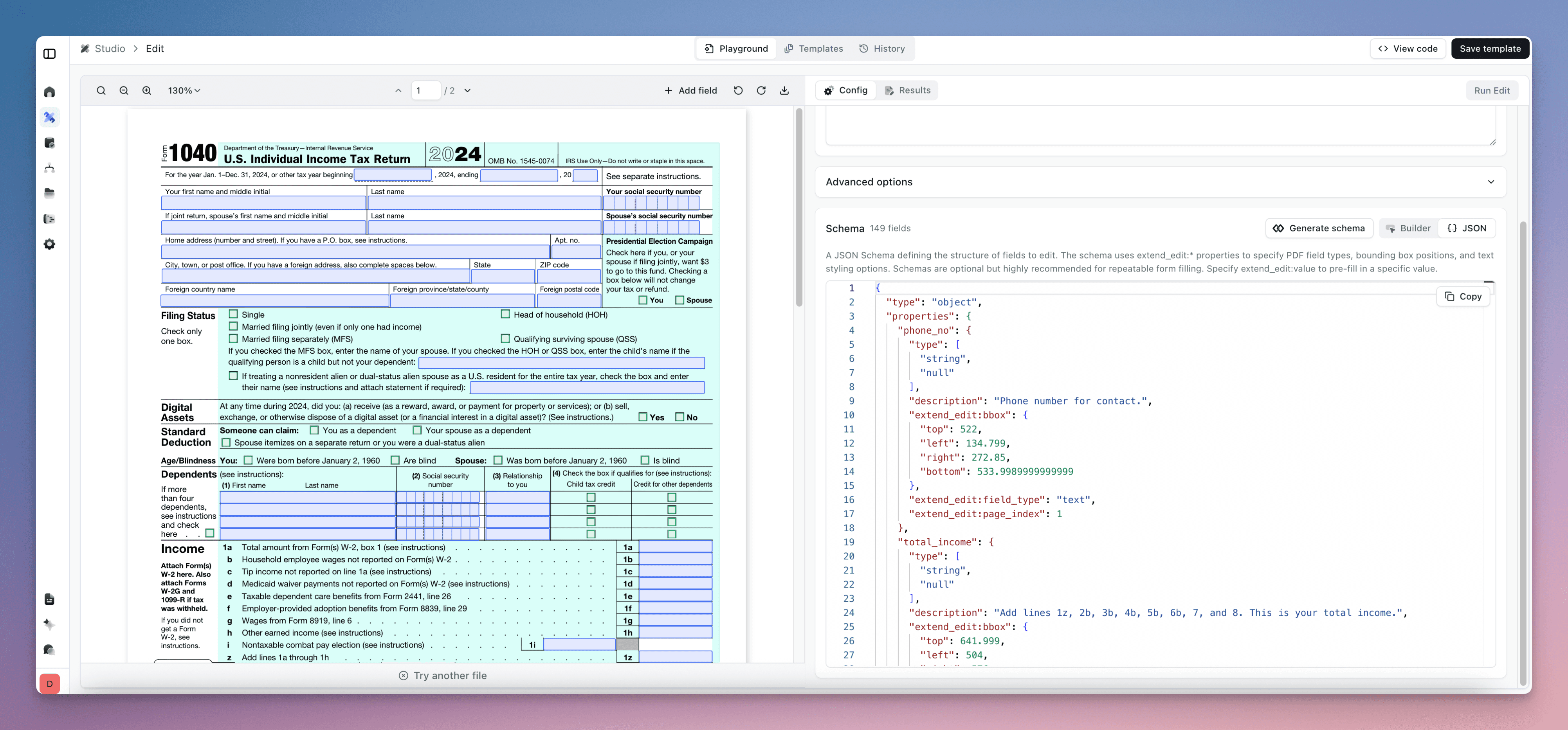 That's what Edit does. It's a single API to fill any form, programmatically—whether you're working with a known template you'll use thousands of times or a document you've never seen before.
