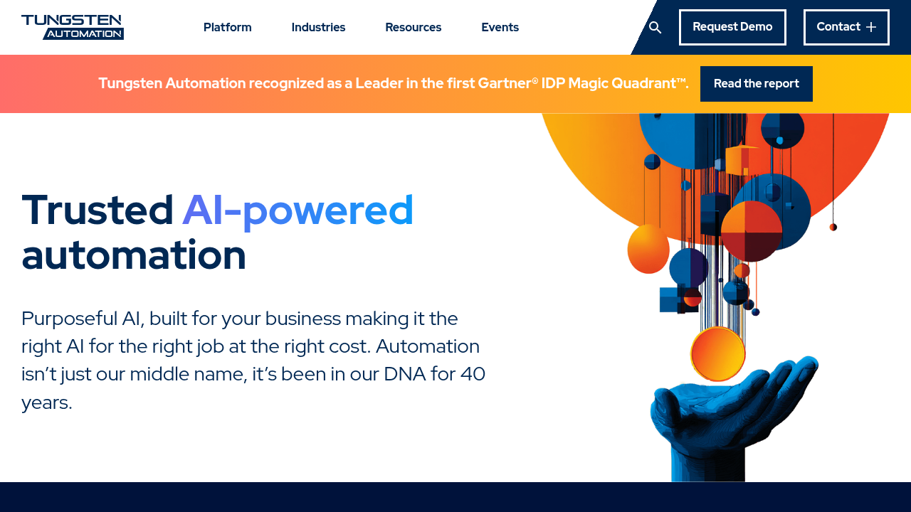 Tungsten Automation, formerly Kofax, is a document processing solution that serves enterprise organizations with document-heavy workflows. The system captures documents from email, scanners, multi-function printers, mobile devices, web applications, fax, and file folders. After document ingestion, Kofax applies algorithms to extract data from forms, invoices, contracts, and other business documents into structured formats that feed downstream systems.