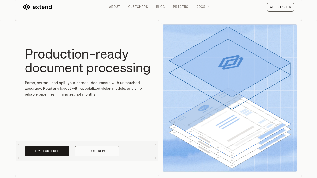 Extend is the complete document processing toolkit comprised of the most accurate parsing, extraction, and splitting APIs to ship your hardest use cases in minutes, not months. Extend's suite of models, infrastructure, and tooling is the most powerful custom document solution, without any of the overhead. Agents automate the entire lifecycle of document processing, allowing engineering teams to process the most complex documents and optimize performance at scale.