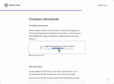 Mercury shipped document validation into the onboarding flow.