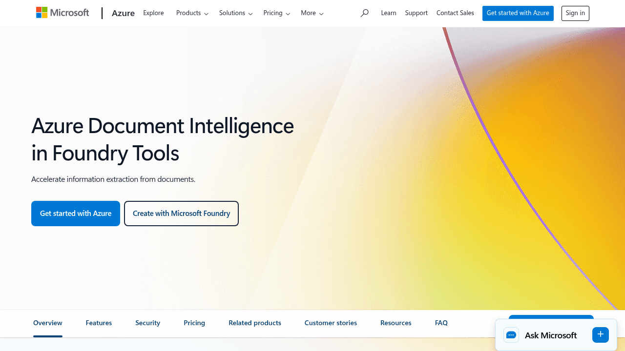 Azure Document Intelligence is Microsoft's cloud service that uses AI models to extract text, key-value pairs, tables, and structures from documents. The platform provides prebuilt models for common business documents alongside custom model training capabilities. Integration with Azure services and Microsoft ecosystem tools enables document processing within existing enterprise infrastructure. The service supports over 100 languages with layout-aware extraction that preserves document structure.