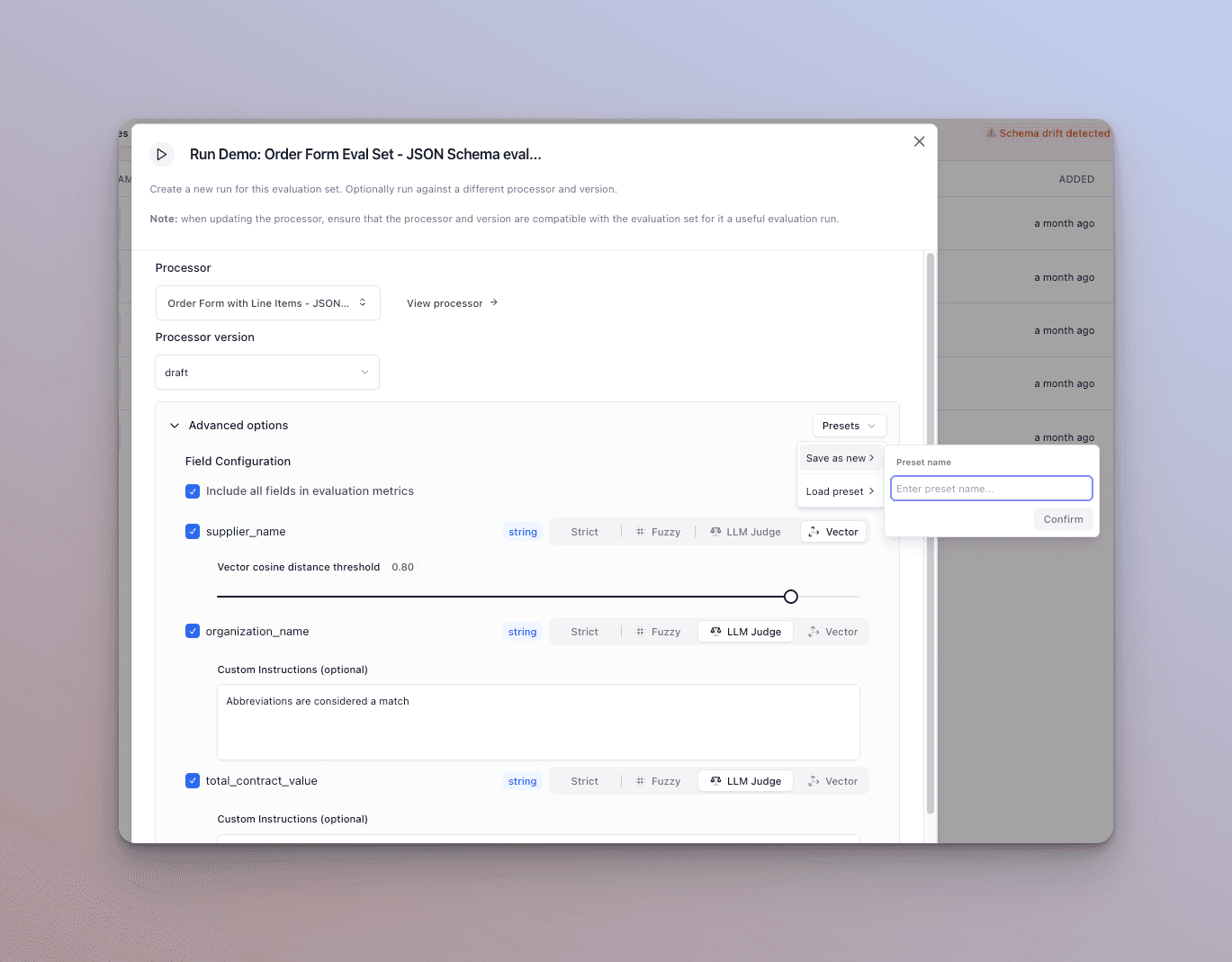We also added the ability for you to save these configs as a preset for easy reuse in future runs.
