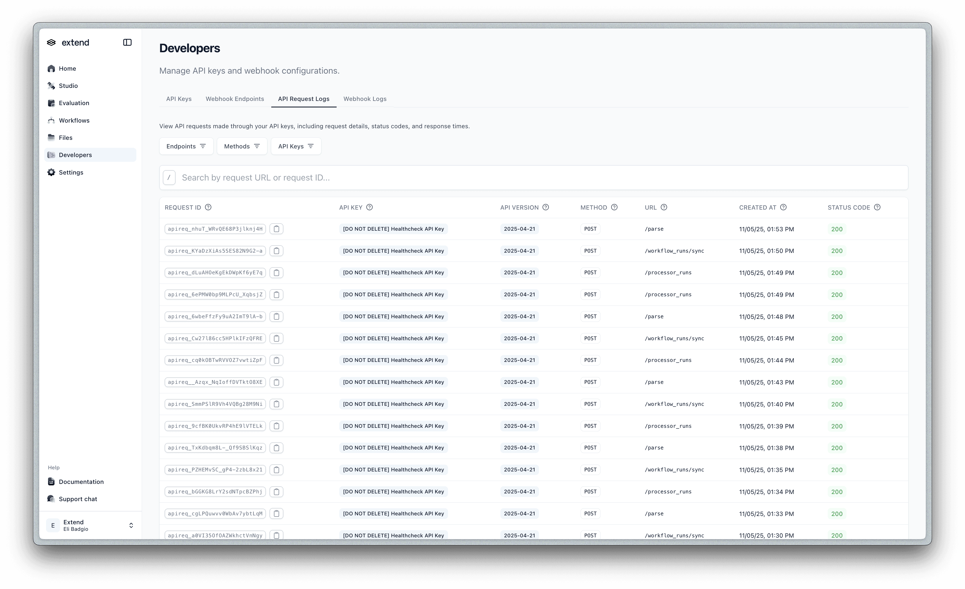 Track and debug your API calls with our new logs interface in the Developers tab, with new filtering and views.