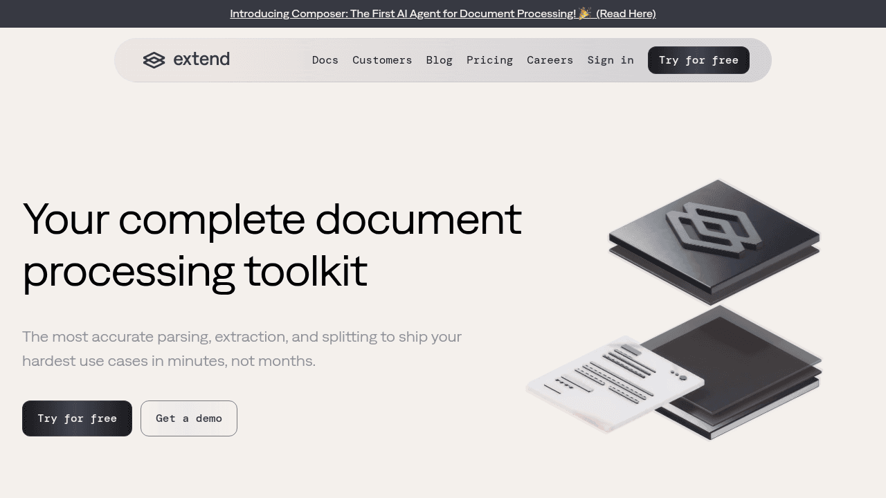 Extend is the complete document processing toolkit comprised of the most accurate parsing, extraction, and splitting APIs to ship your hardest use cases in minutes, not months. Extend's suite of models, infrastructure, and tooling is the most powerful custom document solution, without any of the overhead. Agents automate the entire lifecycle of document processing, allowing your engineering teams to process your most complex documents and optimize performance at scale.
