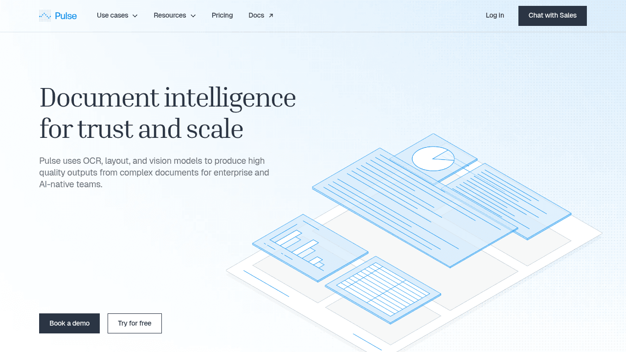 Pulse provides an API-first solution utilizing computer vision to extract structured data. It supports various formats across finance and healthcare, offering a flexible entry point for developers integrating basic parsing into larger applications.